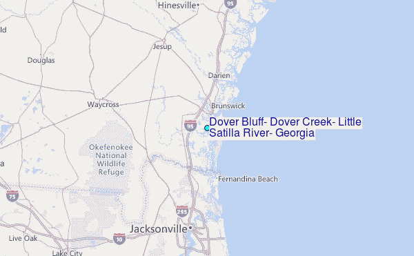 Use this relief map to navigate to tide stations, surf breaks and cities that are in the area of Dover Bluff, Dover Creek, Little Satilla River, Georgia.