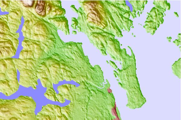 Use this relief map to navigate to tide stations, surf breaks and cities that are in the area of Duncan Bay, British Columbia.