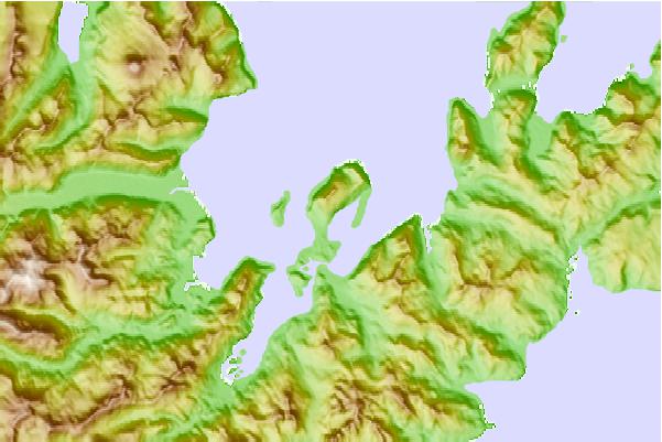 Use this relief map to navigate to tide stations, surf breaks and cities that are in the area of Dutch Harbor, Amaknak Island, Alaska.