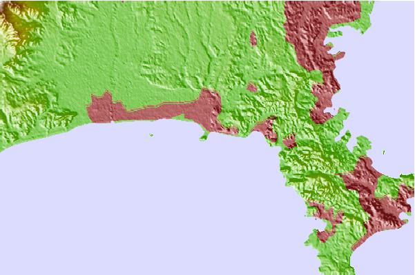 Use this relief map to navigate to tide stations, surf breaks and cities that are in the area of E No Sima, Kanagawa, Japan.
