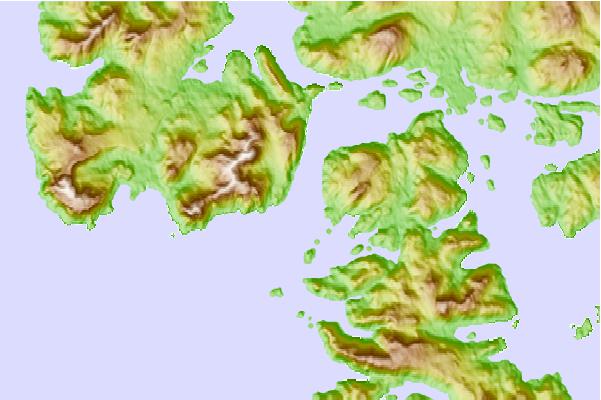 Use this relief map to navigate to tide stations, surf breaks and cities that are in the area of Eagle Point, Meares Passage, Alaska.