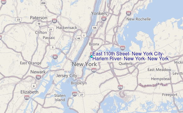 Use this relief map to navigate to tide stations, surf breaks and cities that are in the area of East 110th Street, New York City, Harlem River, New York, New York.