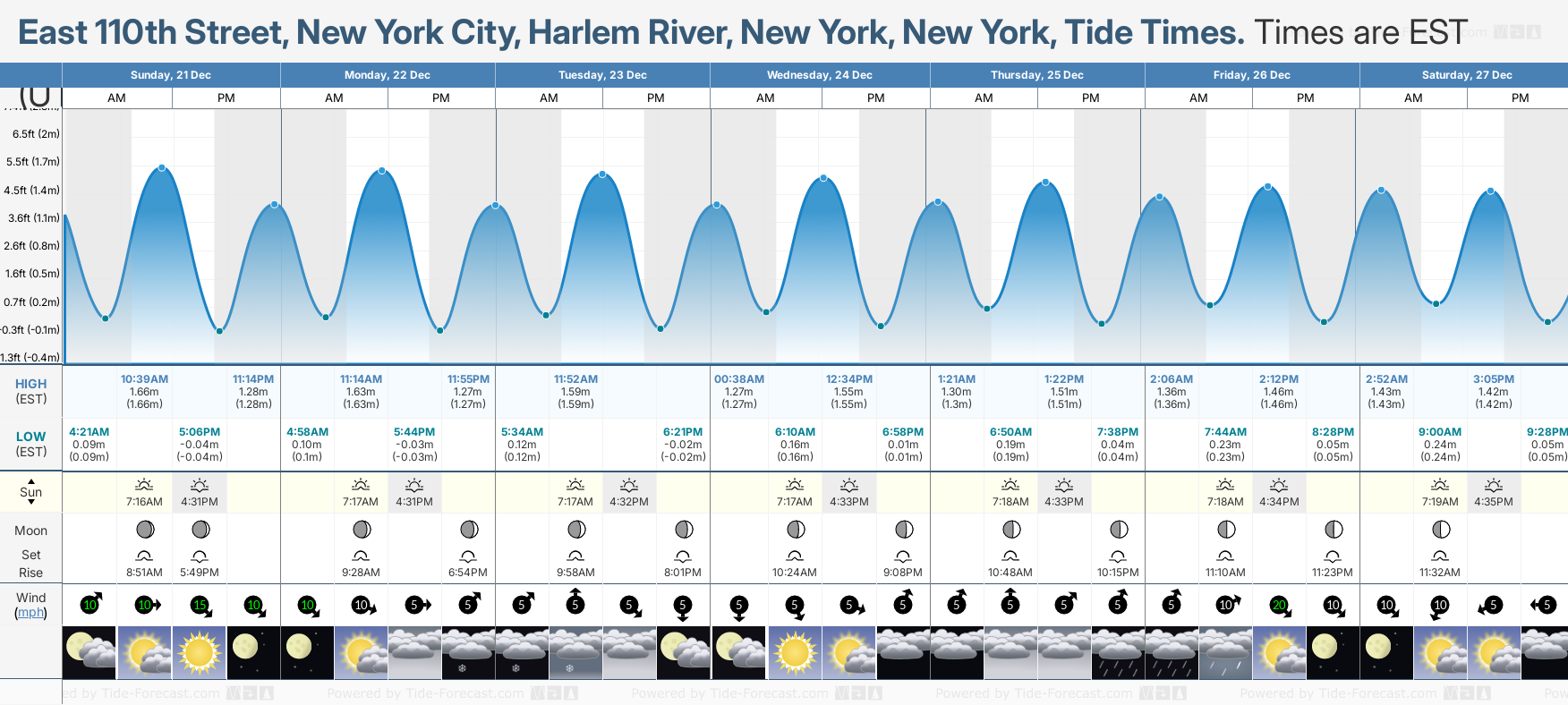 Tide Times for East 110th Street City, Harlem River, New York (tomorrow): Sunday 21 December 2025
