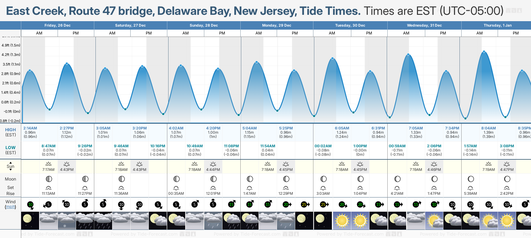 Tide Times for East Creek, Route 47 bridge Bay: Friday 02 January 2026
