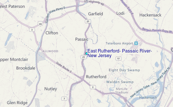 Use this relief map to navigate to tide stations, surf breaks and cities that are in the area of East Rutherford, Passaic River, New Jersey.