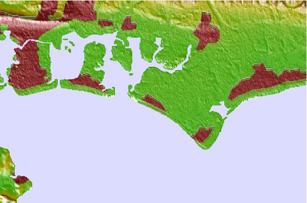 Use this relief map to navigate to tide stations, surf breaks and cities that are in the area of East Wittering.