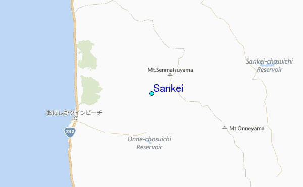 Use this relief map to navigate to tide stations, surf breaks and cities that are in the area of Sankei.