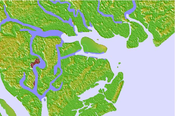 Use this relief map to navigate to tide stations, surf breaks and cities that are in the area of Edding Point, Edding Creek, Morgan River, South Carolina.