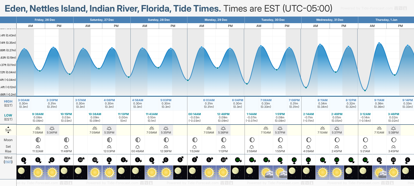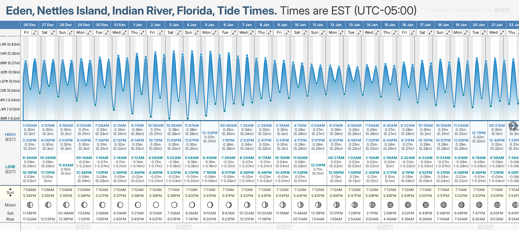 NOTE: Use of this site for Eden, Nettles Island, Indian River, Florida tide times is subject to our terms.