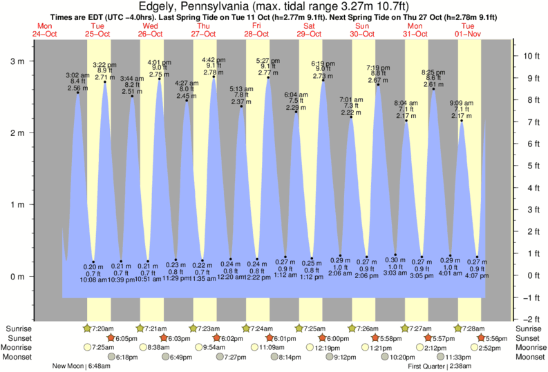 Tide Times are EST (UTC -5.0hrs). Last Spring High Tide at Edgely was on Thu 18 Dec (height: 2.44m 8.0ft). Next high Spring Tide at Edgely will be on Sat 03 Jan (height: 2.54m 8.3ft).