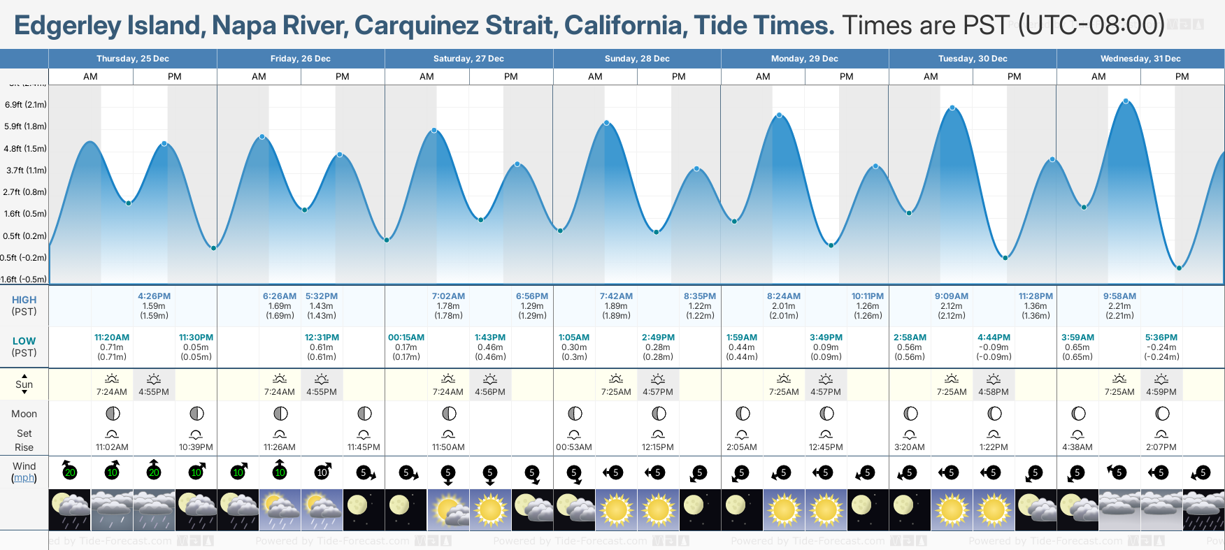 Tide Times for Edgerley Island, Napa River, Carquinez Strait: Wednesday 31 December 2025