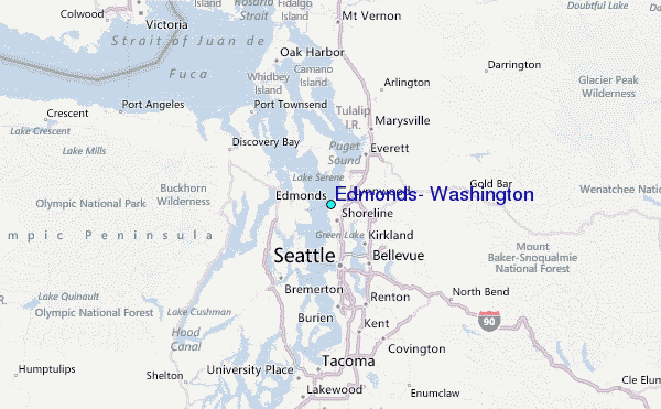 Use this relief map to navigate to tide stations, surf breaks and cities that are in the area of Edmonds, Washington.