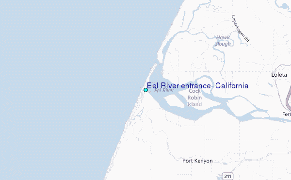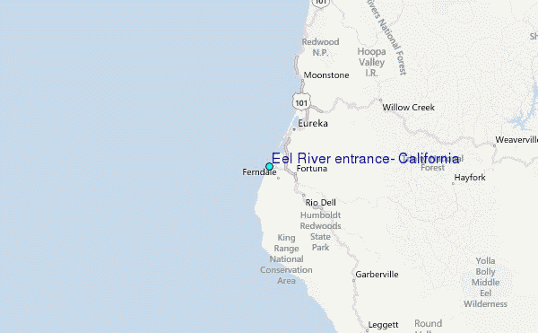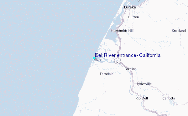 Use this relief map to navigate to tide stations, surf breaks and cities that are in the area of Eel River entrance, California.