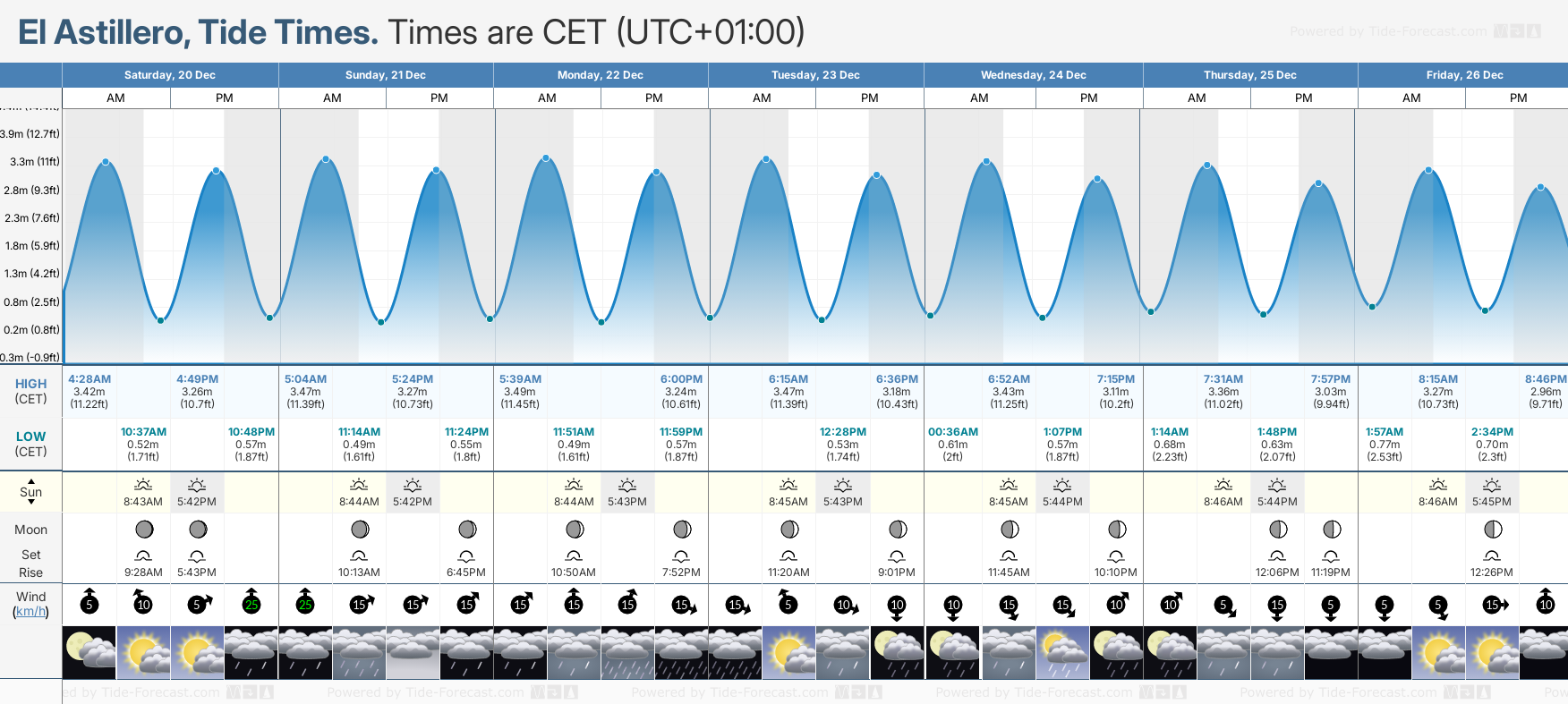 Tide Times for El Astillero (tomorrow): Saturday 20 December 2025