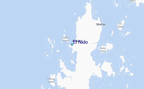 Use this relief map to navigate to tide stations, surf breaks and cities that are in the area of El Nido.