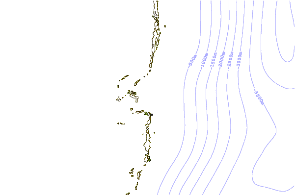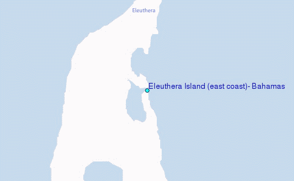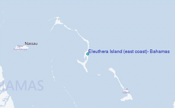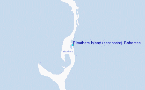 Use this relief map to navigate to tide stations, surf breaks and cities that are in the area of Eleuthera Island (east coast), Bahamas.