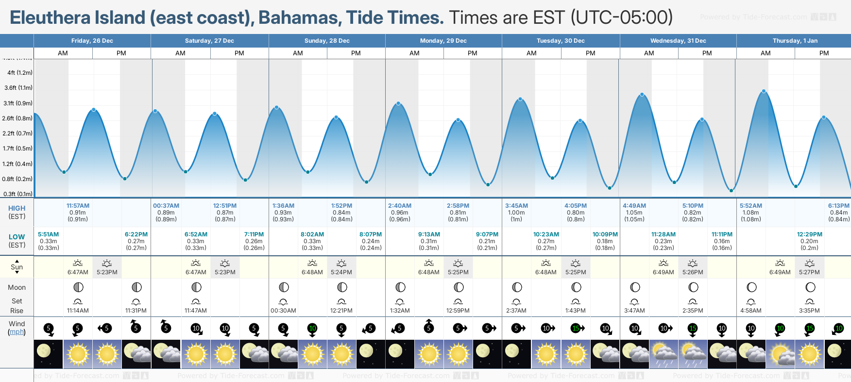 Tide Times for Eleuthera Island (east coast): Thursday 01 January 2026