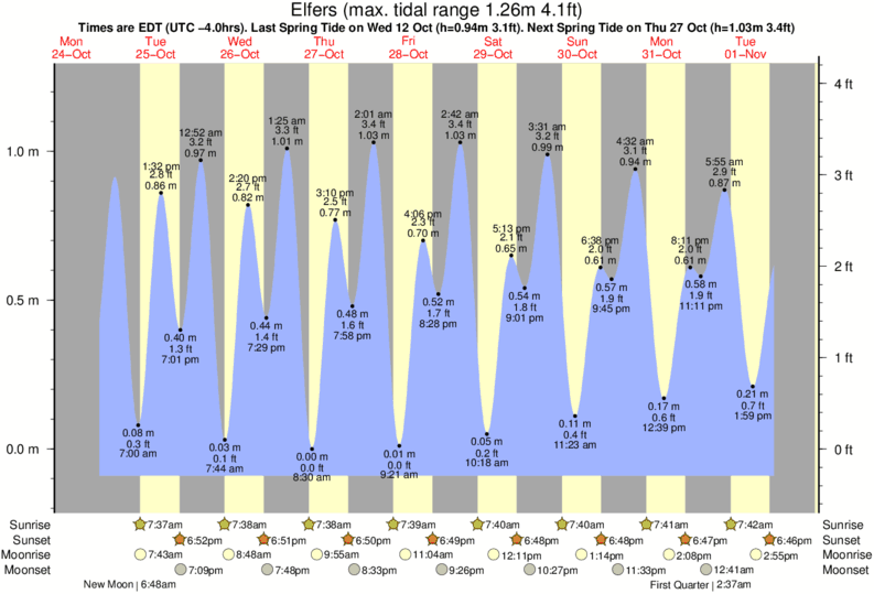 Tide Times are EST (UTC -5.0hrs). Last Spring High Tide at Elfers was on Fri 05 Dec (height: 1.16m 3.8ft). Next high Spring Tide at Elfers will be on Sat 20 Dec (height: 1.01m 3.3ft).