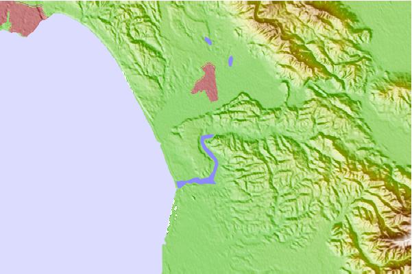 Use this relief map to navigate to tide stations, surf breaks and cities that are in the area of Elkhorn Slough railroad bridge, California.