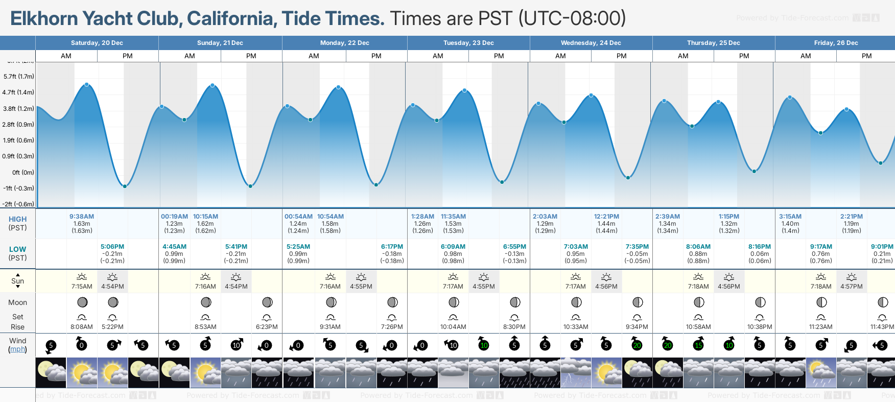 Tide Times for Elkhorn Yacht Club (tomorrow): Sunday 21 December 2025