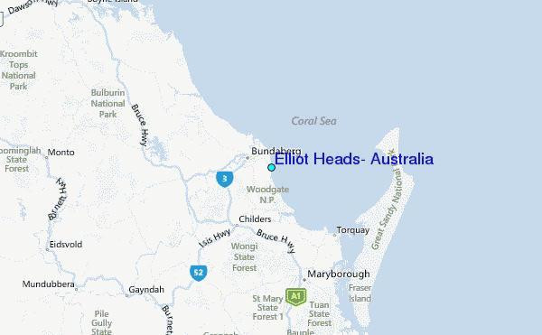 Use this relief map to navigate to tide stations, surf breaks and cities that are in the area of Elliot Heads, Australia.