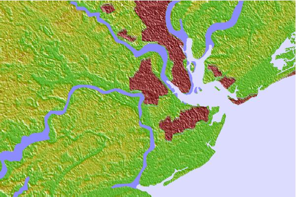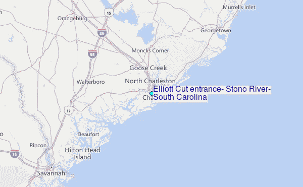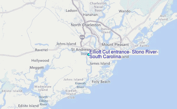 Use this relief map to navigate to tide stations, surf breaks and cities that are in the area of Elliott Cut entrance, Stono River, South Carolina.