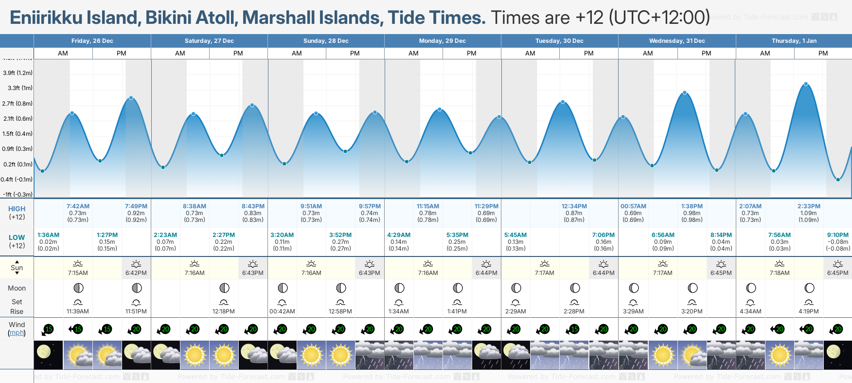 Tide Times for Eniirikku Island, Bikini Atoll (tomorrow): Friday 26 December 2025