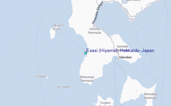 Use this relief map to navigate to tide stations, surf breaks and cities that are in the area of Esasi (Hiyama), Hokkaido, Japan.