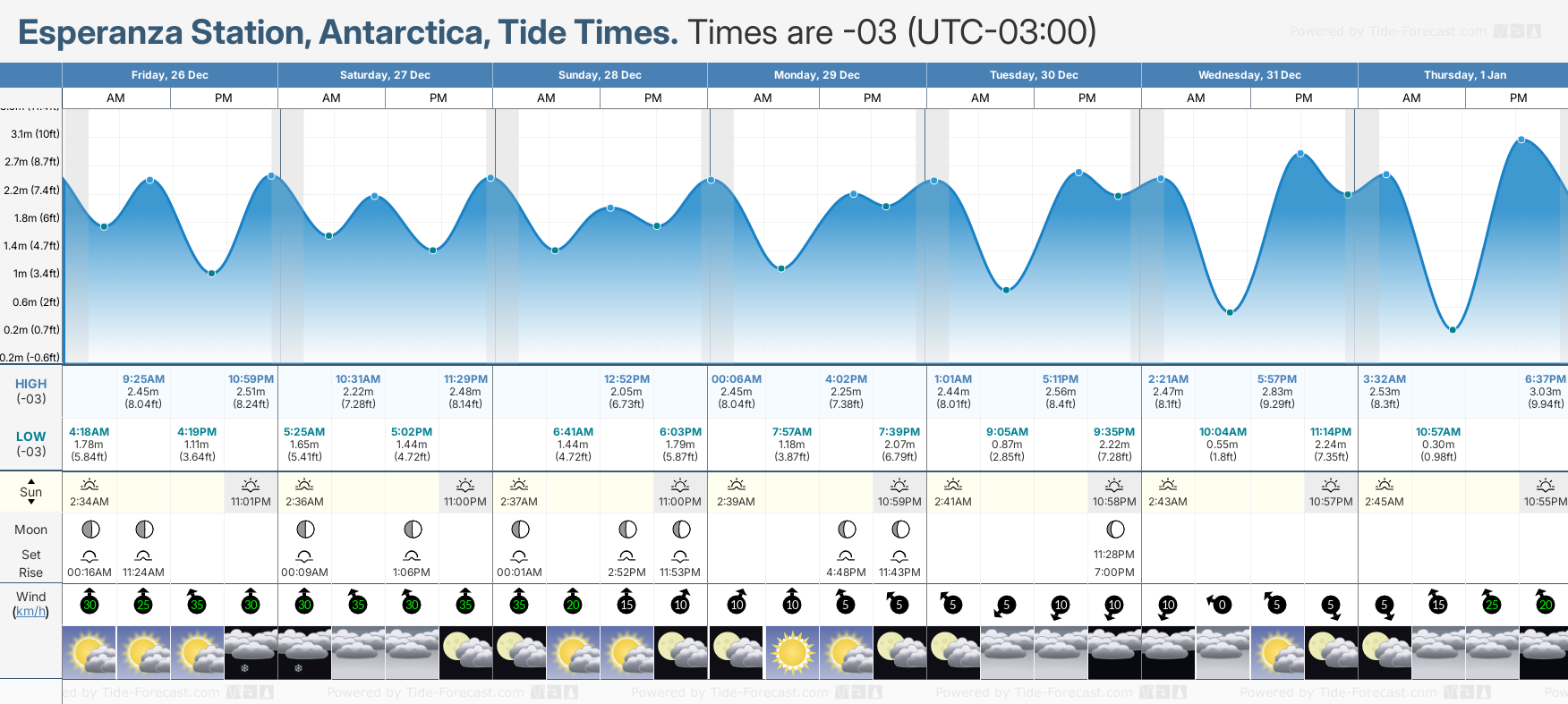 Tide Times for Esperanza Station (tomorrow): Friday 26 December 2025