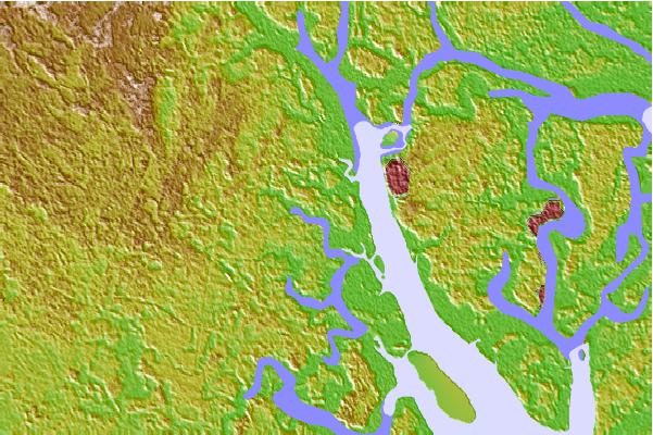 Use this relief map to navigate to tide stations, surf breaks and cities that are in the area of Euhaw Creek, 2.5 miles above entrance, Broad River, South Carolina.