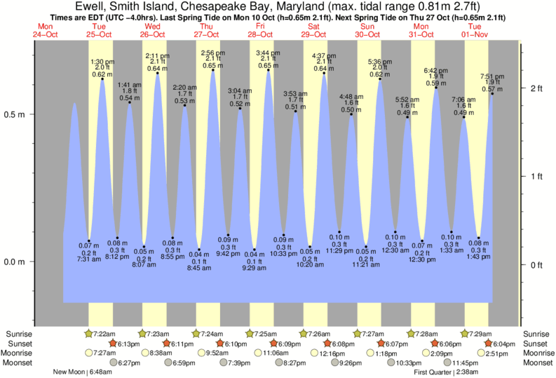 Tide chart for Ewell, Smith Island, Chesapeake BayShowing low and high tide times for the next 30 days at Ewell, Smith Island, Chesapeake Bay. Tide Times are EST (UTC -5.0hrs).
