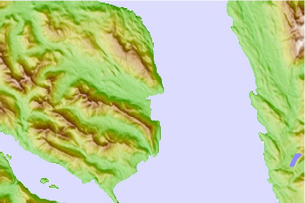 Use this relief map to navigate to tide stations, surf breaks and cities that are in the area of False Bay, Chatham Strait, Alaska.