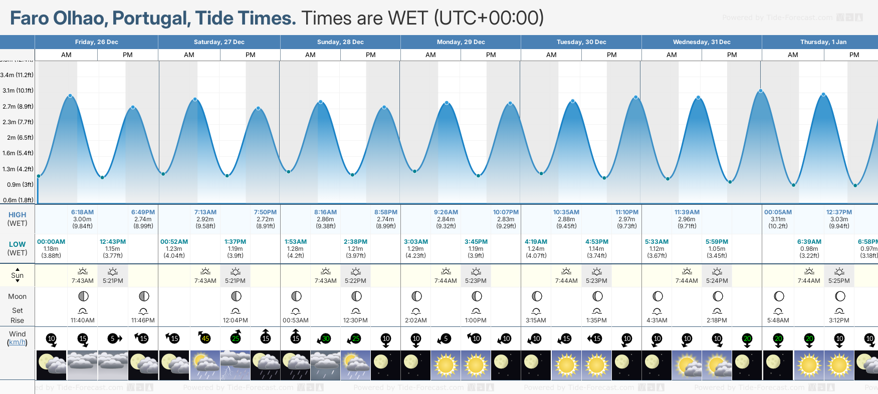 Tide Times for Faro (tomorrow): Friday 26 December 2025