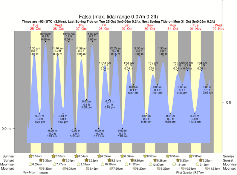 December and January Tide charts for Fatsa: The tide charts below show the height, time and date of high and low tides for the next 30 days.