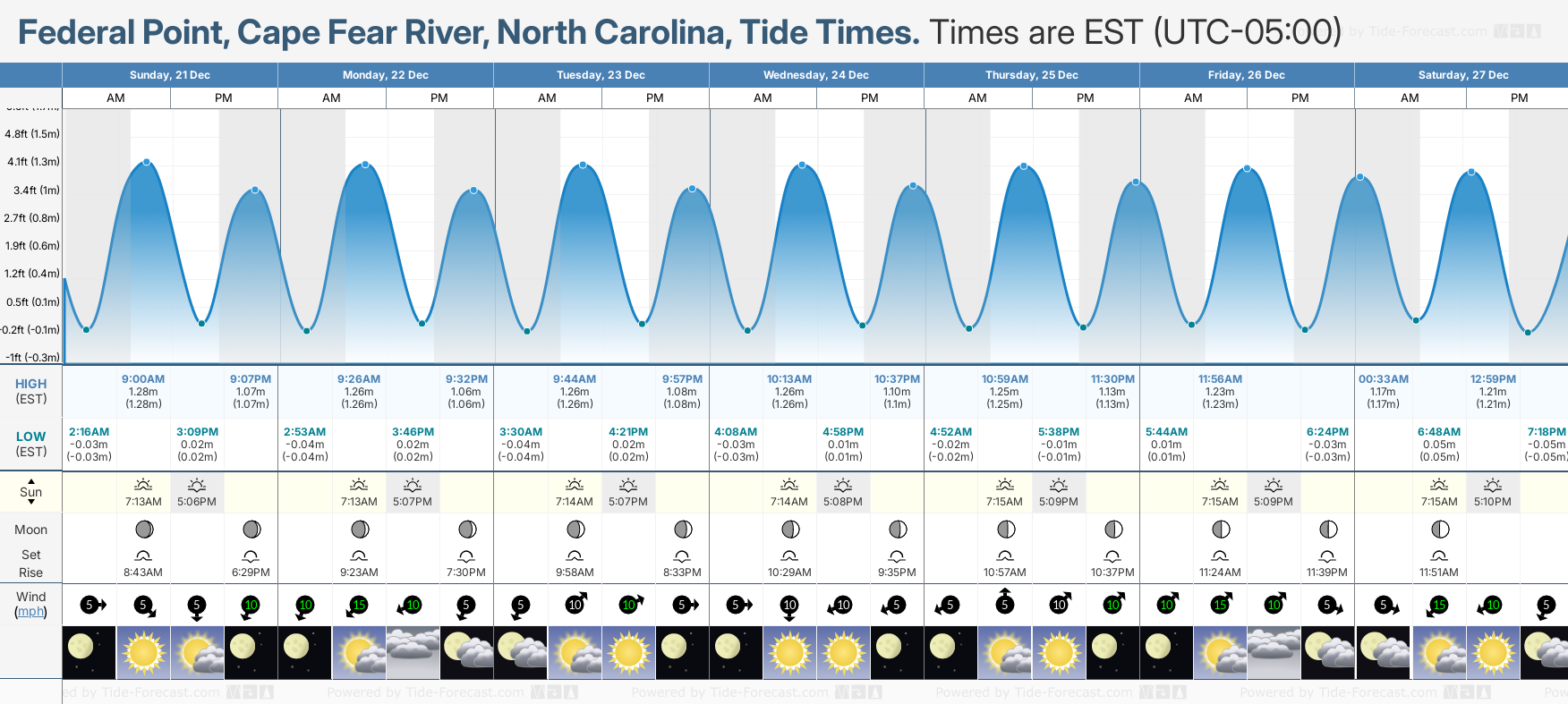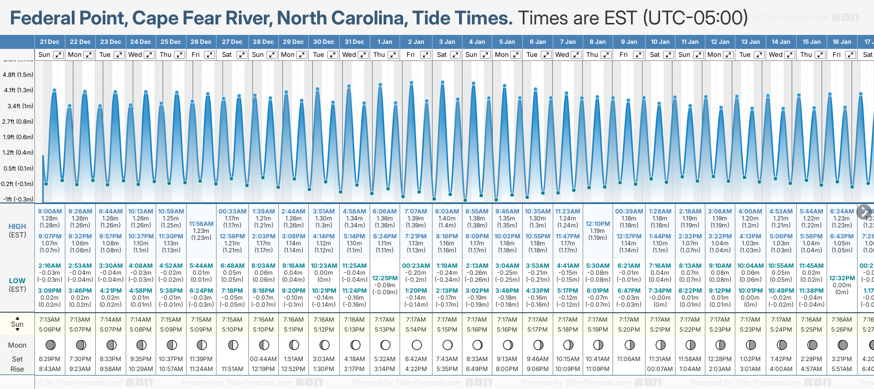 Tide Times for Federal Point, Cape Fear River (tomorrow): Sunday 21 December 2025
