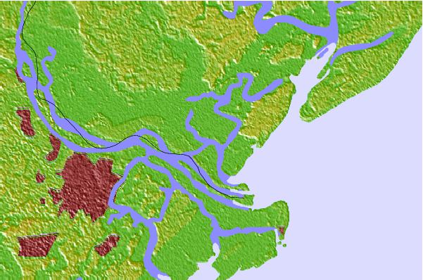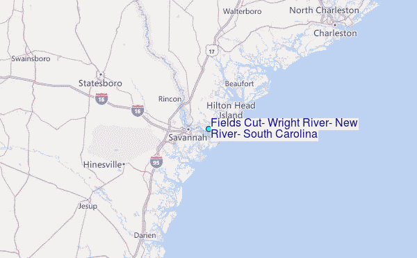Use this relief map to navigate to tide stations, surf breaks and cities that are in the area of Fields Cut, Wright River, New River, South Carolina.