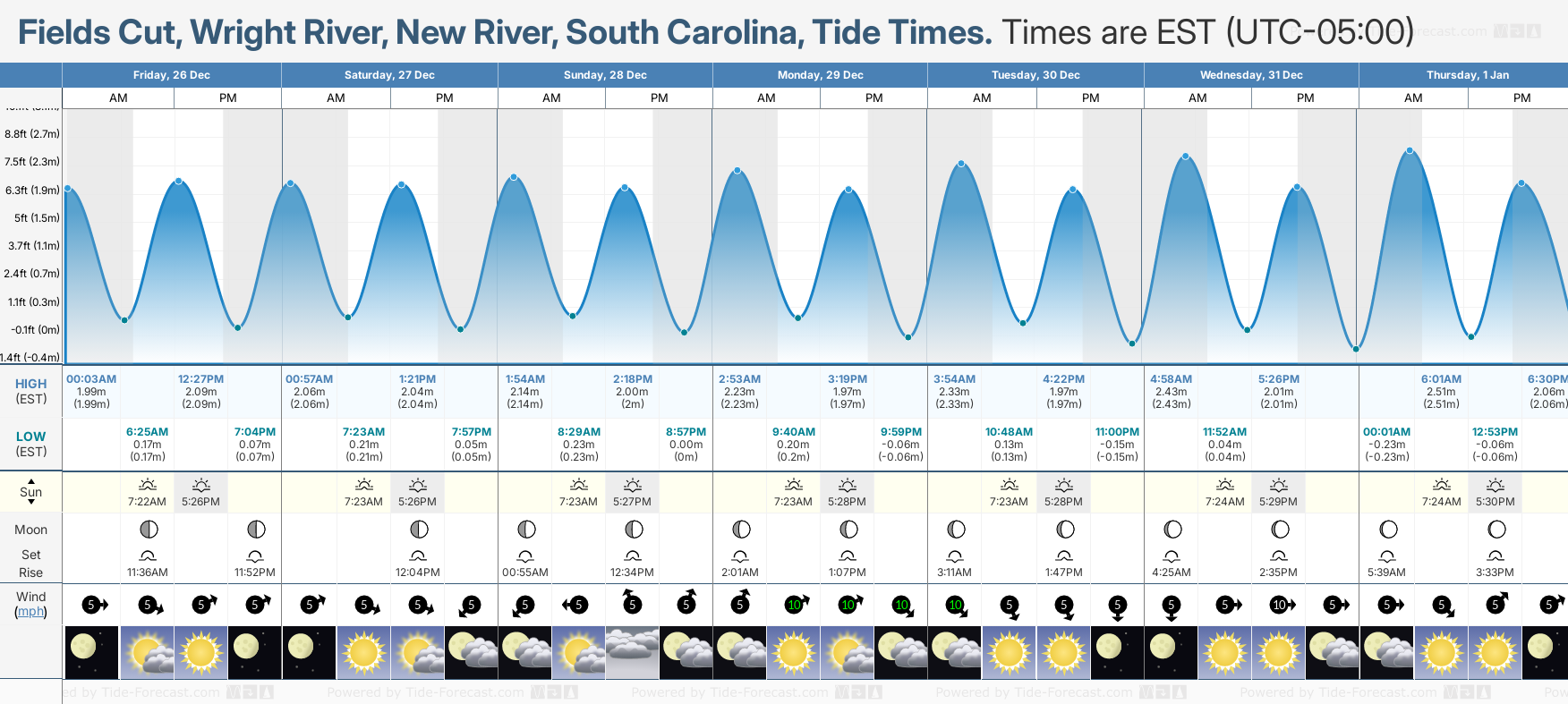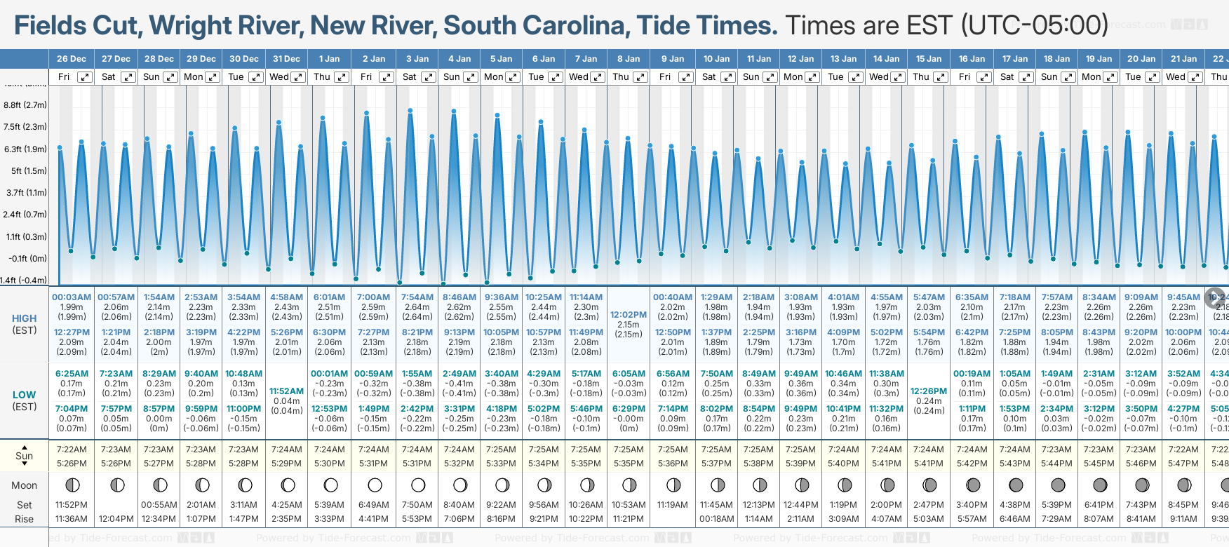 NOTE: Use of this site for Fields Cut, Wright River, New River, South Carolina tide times is subject to our terms.