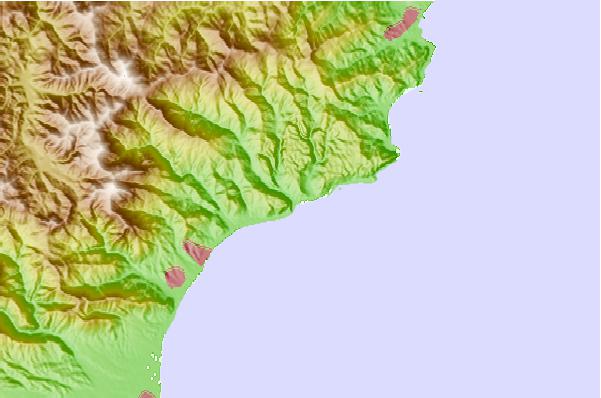 Use this relief map to navigate to tide stations, surf breaks and cities that are in the area of Finale Ligure.