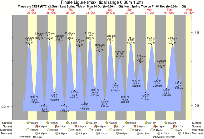 December and January Tide charts for Finale Ligure: The tide charts below show the height, time and date of high and low tides for the next 30 days.