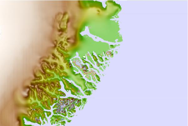 Use this relief map to navigate to tide stations, surf breaks and cities that are in the area of Finnsbu, Greenland.