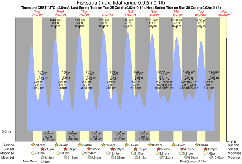 Tide Times are CET (UTC +1.0hrs). Last Spring High Tide at Fisksatra was on Fri 19 Dec (height: 0.02m 0.1ft). Next high Spring Tide at Fisksatra will be on Wed 24 Dec (height: 0.02m 0.1ft).