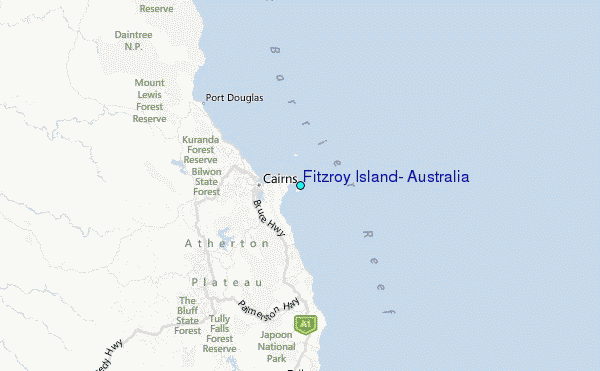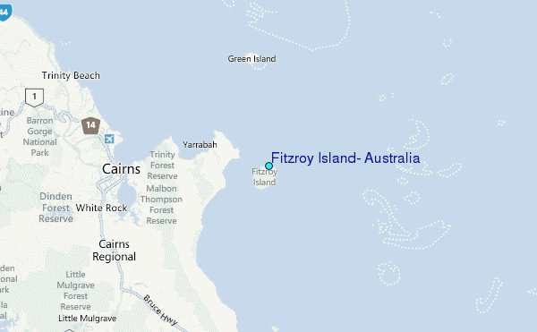 Use this relief map to navigate to tide stations, surf breaks and cities that are in the area of Fitzroy Island, Australia.