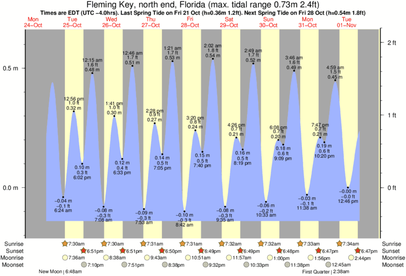 Tide chart for Fleming Key, north endShowing low and high tide times for the next 30 days at Fleming Key, north end. Tide Times are EST (UTC -5.0hrs).