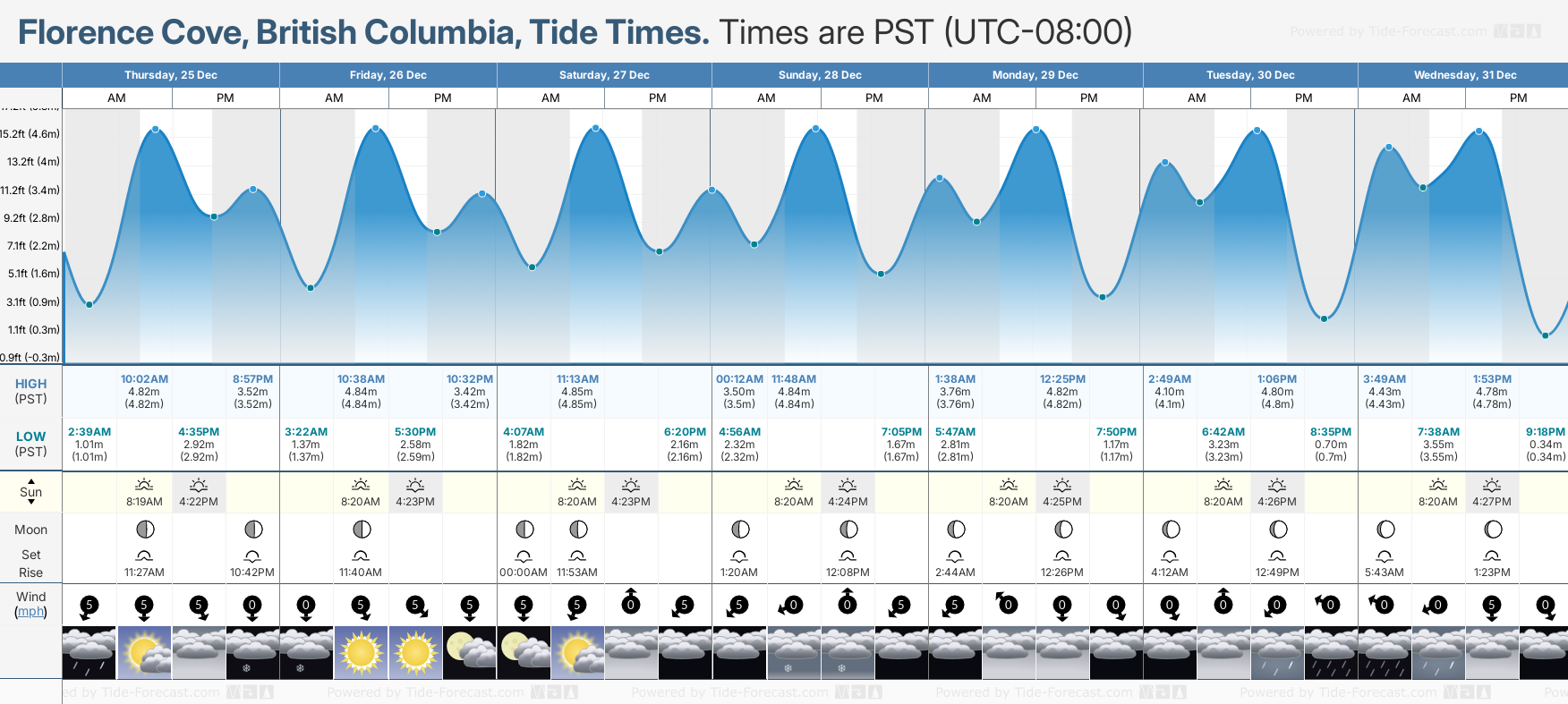 NOTE: Use of this site for Florence Cove, British Columbia tide times is subject to our terms.