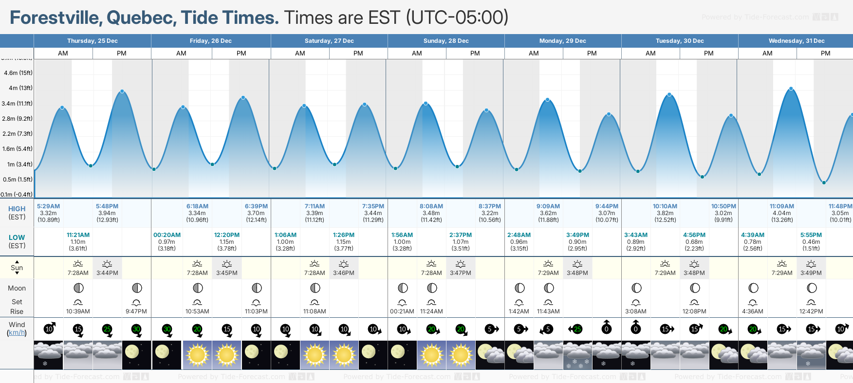 NOTE: Use of this site for Forestville, Quebec tide times is subject to our terms.