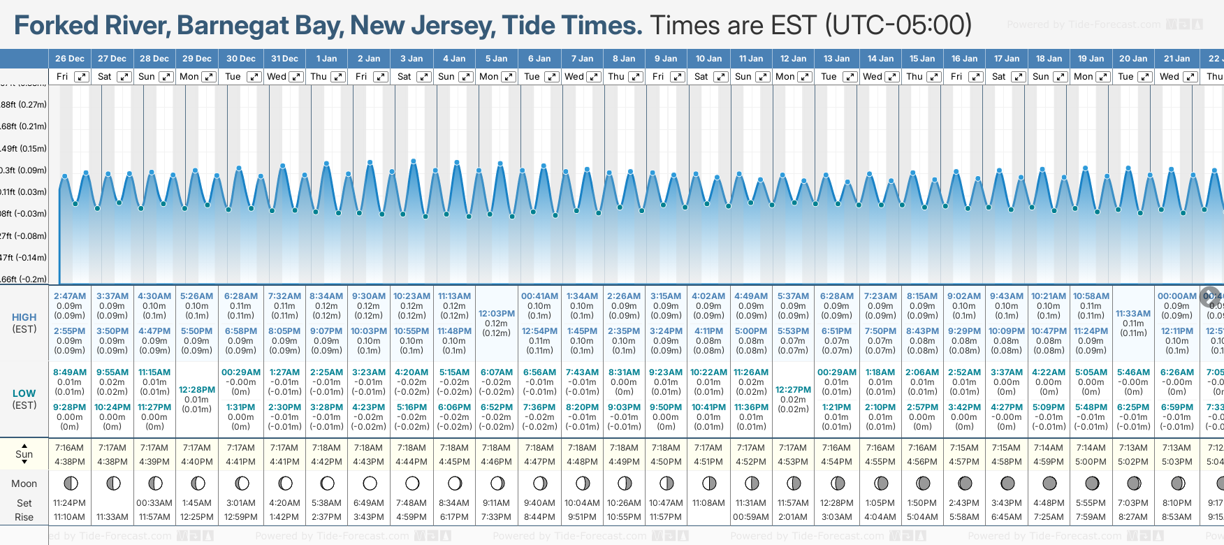 NOTE: Use of this site for Forked River, Barnegat Bay, New Jersey tide times is subject to our terms.