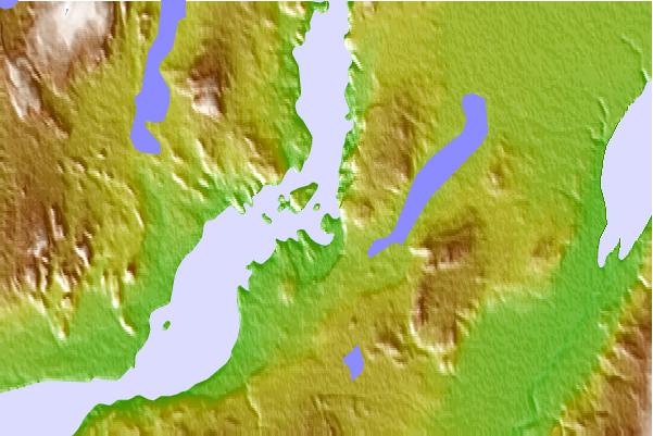 Use this relief map to navigate to tide stations, surf breaks and cities that are in the area of Fort Chimo, Quebec.