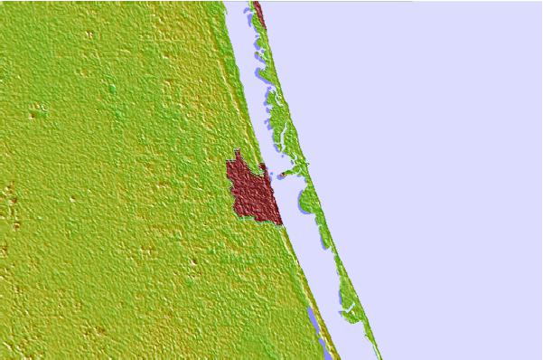 Use this relief map to navigate to tide stations, surf breaks and cities that are in the area of Fort Pierce (inside), Florida.