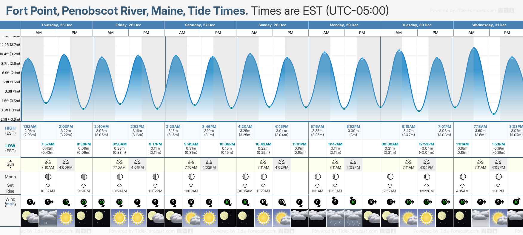 Tide Times for Fort Point, Penobscot River (tomorrow): Thursday 25 December 2025