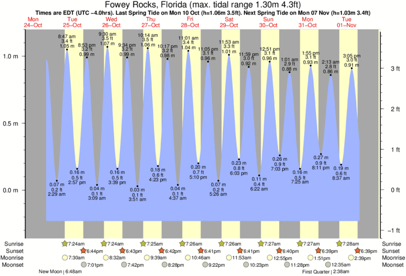 Tide Times are EST (UTC -5.0hrs). Last Spring High Tide at Fowey Rocks was on Fri 19 Dec (height: 0.82m 2.7ft). Next high Spring Tide at Fowey Rocks will be on Sat 03 Jan (height: 0.91m 3.0ft).